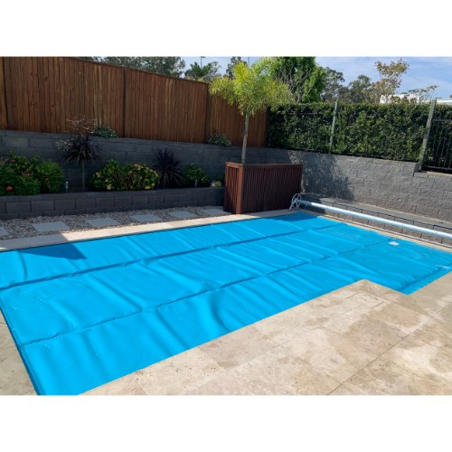 Oasis Koolcover (500 micron) looks like a solar blanket, but will not heat the water.Ideal for hot climates or heated pools, it prevents the sun's rays from penetrating and heating the water, helping to maintain existing water temperature. It will also stop up to 99.84% of evaporation, and comes with an 8 year pro-rata warranty.