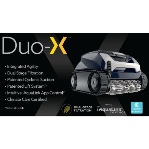 Duo-X™ features patented cyclonic suction that is powerful and long-lasting. Debris is kept in suspension to avoid filter clogging and to maintain the same level of cleaning performance throughout the cycle.