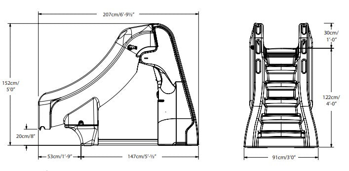 - Comes partially assembled and includes an easy to use trolley to roll SlideAway on and off the pool deck