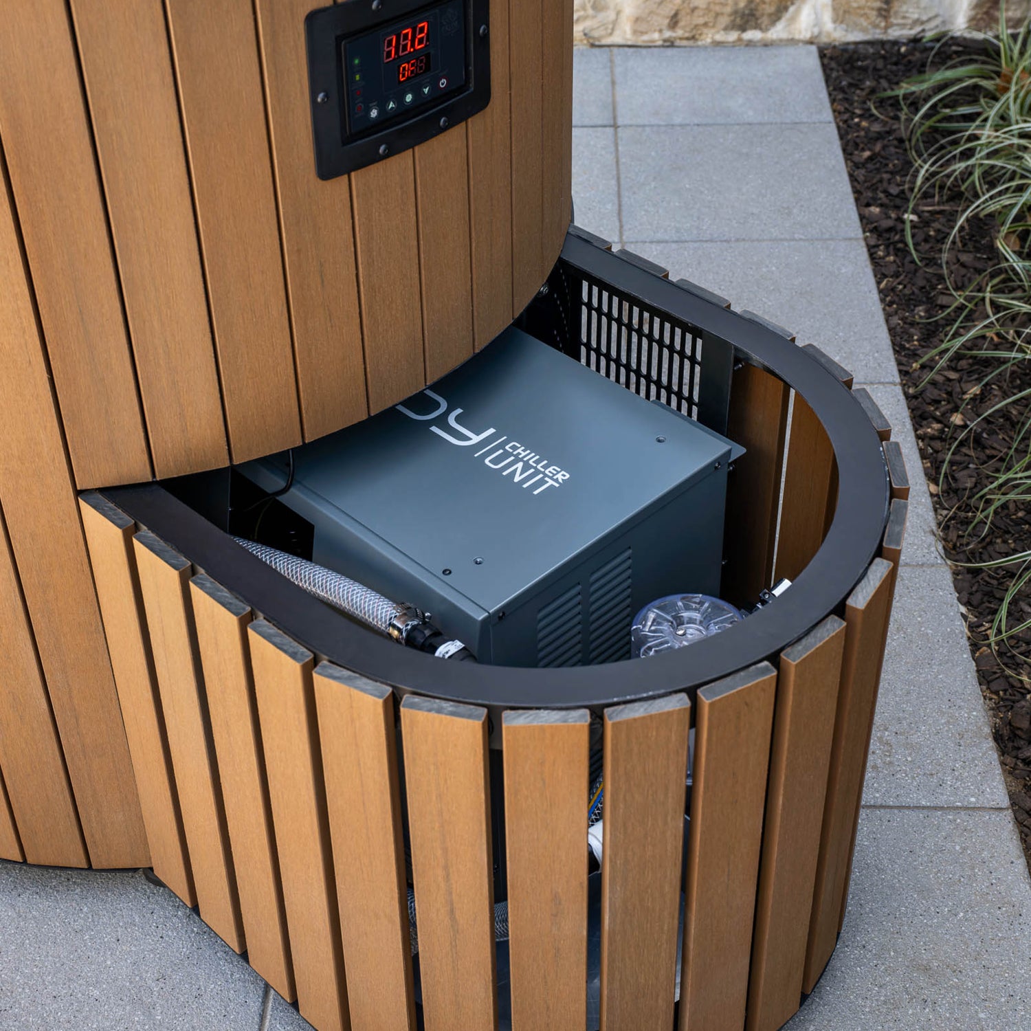 All-in-one unit combining bath and chiller unit ready to plug in and use, no ice needed. Lightweight construction, user-friendly design with a stylish composite finish that’s durable, hardwearing and made for Australian conditions.